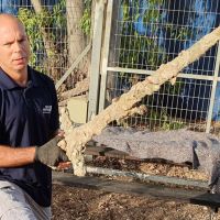La espada, que fue inmediatamente entregada a las autoridades, tiene un metro de largo y está cubierta por organismos marinos.