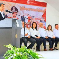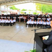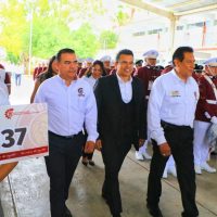 En el CBTIS 236 de Ciudad Victoria, el alcalde Eduardo Gattás Báez puso en marcha el cuarto encuentro cívico de la DGETI 2023 de concurso de bandas de guerra y escoltas de bandera.