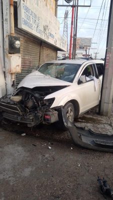 La mujer que resultó lesionada, quedo prensada entre los fierros de la unidad.