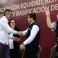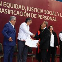 «Estamos aliviando retrasos de muchos años, de muchas decenas de años. Ahorita, los compañeros que pasaron a recoger su nombramiento, que estamos actualizando a más de 3 mil compañeros en el estado, hay algunos que llevaban esperando los 24 años, 10 años, 8 años», añadió.