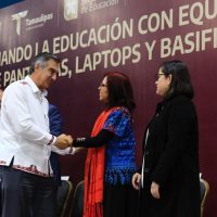 Durante la ceremonia de entrega de 505 pantallas de televisión para la Red Edusat a 239 telesecundarias y telebachilleratos; 930 equipos de cómputo (laptops) del Fideicomiso de Apoyo de Tecnologías Educativas y 3 mil 215 nombramientos de basificación a personal docente y administrativo de la Secretaría de Educación de Tamaulipas, la titular de la SEP, Leticia Ramírez Amaya reconoció que a un año del gobierno de Américo Villarreal ya se dejan ver los avances de la transformación en el estado.