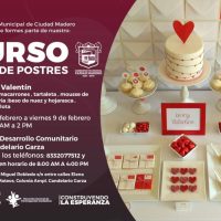 Cabe mencionar que del 5 al 9 de febrero se realizará el curso “Mesa de Postres” con el tema San Valentín, en el que aprenderán a elaborar macarrones, tartaletas, mousse de fresa, galletería como besos de nuez y hojarasca, además de alfajores y carlota; el horario será de 10:00 a 14:00 horas.