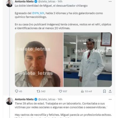 Por otro lado, Antonio Nieto señala que tras el cateo se habla sobre supuestos “rastros de necrofilia y fetiches”.