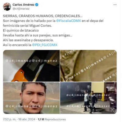 De acuerdo con Carlos Jiménez, entre los objetos que se presume utilizaba para cometer los actos por los que se le investigan se encontraron sierras, aunque se desconoce si este en particular fue utilizado para perpetrar un feminicidio.