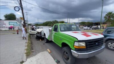 La conductora de una camioneta choca por alcance en el bulevard Fidel Velázquez con calle Bravo en Ciudad Victoria, cuando le fallaron los frenos mientras descendía de la loma del planetario.
