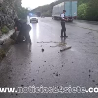 El desprendimiento ocurrió a la altura del kilómetro 28, cerca del conocido “Túnel Falso”, donde las rocas cayeron debido a un deslave provocado por las intensas lluvias registradas en las últimas horas.