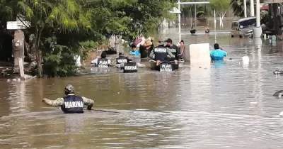 El gobernador señaló que no basta con mantener limpios los drenes, sino que se necesitan obras de mayor magnitud, especialmente sobre los ríos Pánuco y Tamesí, cuya creciente, combinada con mareas altas, impide que el agua fluya y provoca inundaciones. En este contexto, destacó que hasta el momento no se reportan personas fallecidas ni desaparecidas, aunque tres colonias resultaron afectadas por encharcamientos y 15 personas fueron trasladadas a albergues de manera preventiva.