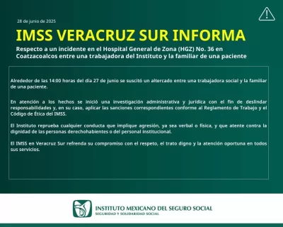 Una trabajadora social del Hospital General Número 36 del IMSS-Bienestar en Coatzacoalcos, Veracruz, fue captada en video agrediendo a una paciente que la grababa con su celular, hecho que desató indignación en redes sociales y reactivó el debate sobre el trato en el sistema de salud pública.