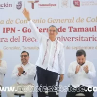 Tras dar la bienvenida al director del IPN, doctor Arturo Reyes Sandoval, a quien reconoció por su destacada trayectoria como científico mexicano, el gobernador aseguró que este esfuerzo conjunto con el municipio de González permitirá a Tamaulipas contribuir a lograr la meta de la presidenta Claudia Sheinbaum: hacer de México una potencia científica y tecnológica.