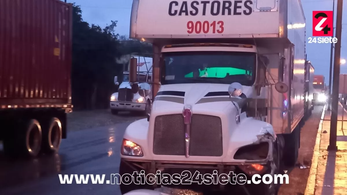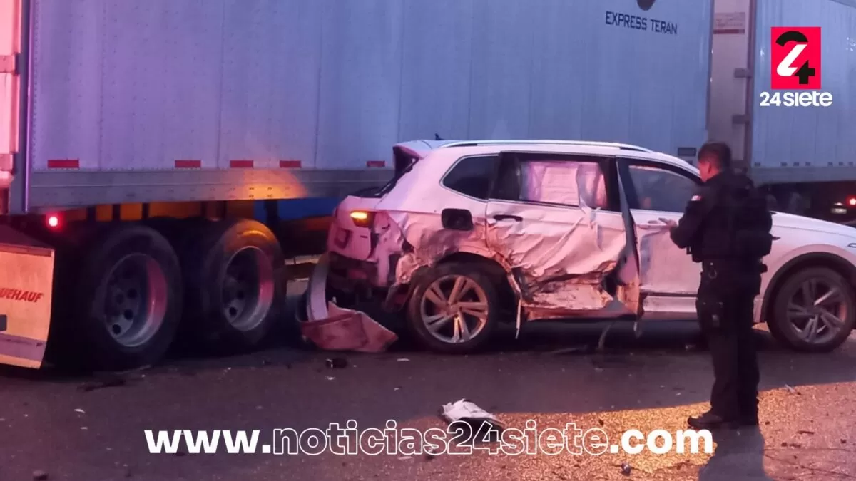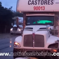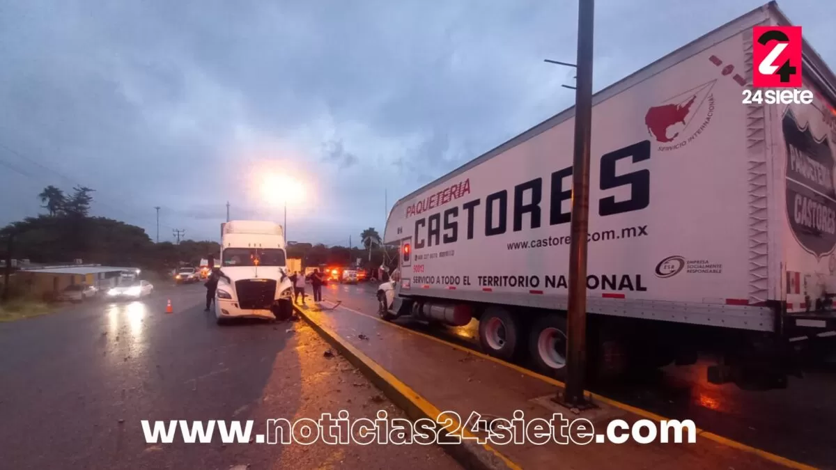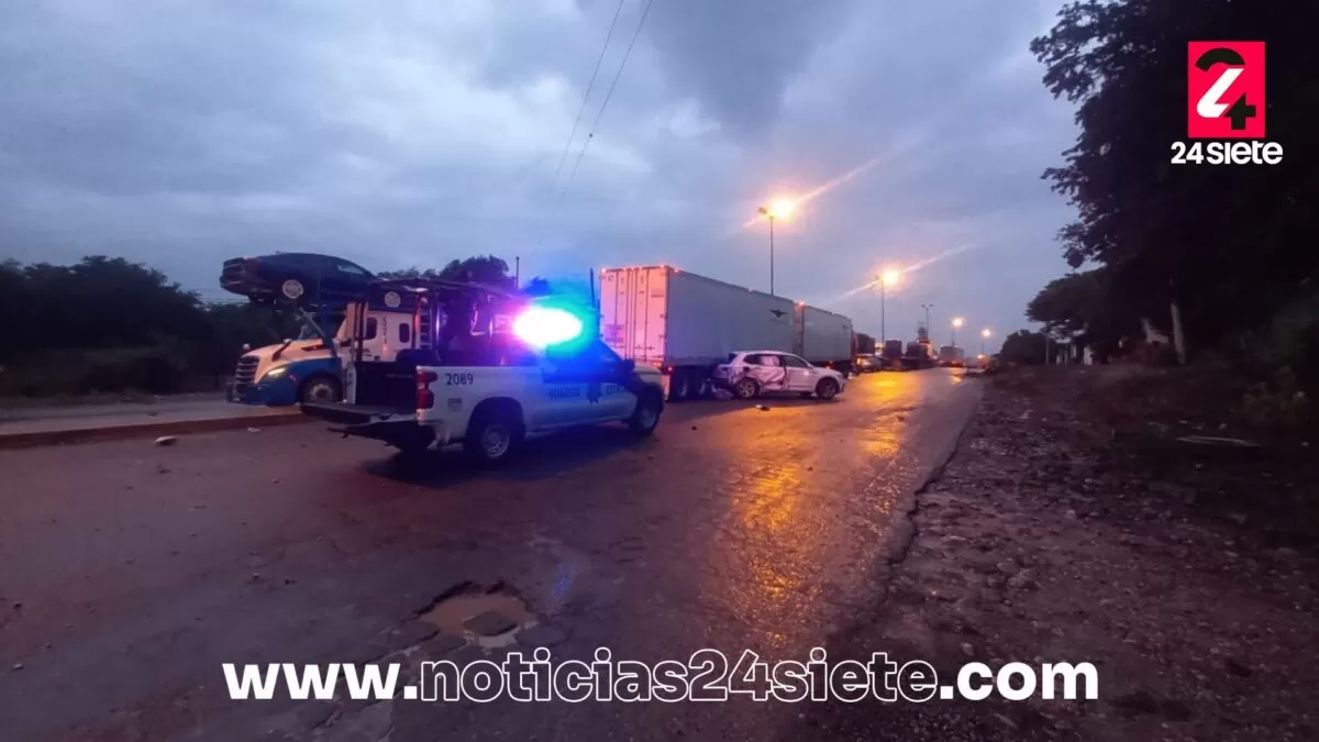 En el accidente participaron cuatro vehículos: un tractocamión de plataforma que transportaba estructuras metálicas, un sedán, otro tractocamión y un camión. Las unidades colisionaron sobre uno de los carriles, aunque no se registraron personas lesionadas.