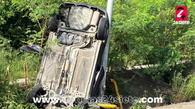 De acuerdo con los primeros reportes, el conductor de un vehículo color azul habría perdido el control al tomar una curva a exceso de velocidad, lo que ocasionó que la unidad terminara volcada e impactada contra un poste de alumbrado público.