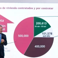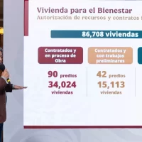 El Gobierno de México informó que, dentro de Vivienda para el Bienestar, hay cerca de 300 mil viviendas en proceso: 200,613 del Infonavit y 86,708 de Conavi. Para este año, la meta es 400 mil: 302 mil (Infonavit), 86 mil (Conavi) y 9 mil (Fovissste), con 70% de avance.