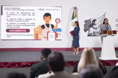 La funcionaria federal explicó que la primera entrega se realizará desde el miércoles 1 de octubre, con un pago único de 8 mil pesos que ayudará en la limpieza y recuperación inicial de los hogares afectados.