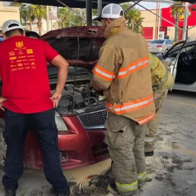 Al recibir el reporte, elementos del Cuerpo de Bomberos acudieron al lugar y confirmaron que se trataba de un conato de incendio localizado en la fibra que cubre el múltiple (manifold) del motor, por lo que de inmediato procedieron a sofocar las llamas antes de que el fuego se extendiera al resto del automóvil.