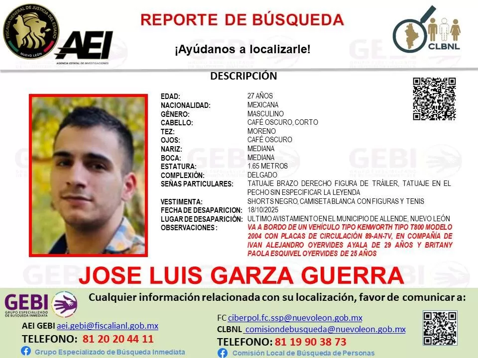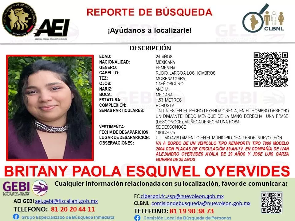 De acuerdo con la Fiscalía General de Justicia de Nuevo León, las víctimas fueron identificadas como José Luis Garza Guerra, de 27 años; Iván Alejandro Oyervides Ayala, de 29, y Britany Paola Esquivel Oyervides, de 24, quienes llegaron a Reynosa el viernes 18 de octubre, se hospedaron en un hotel de la ciudad y posteriormente dejaron de responder llamadas y mensajes.