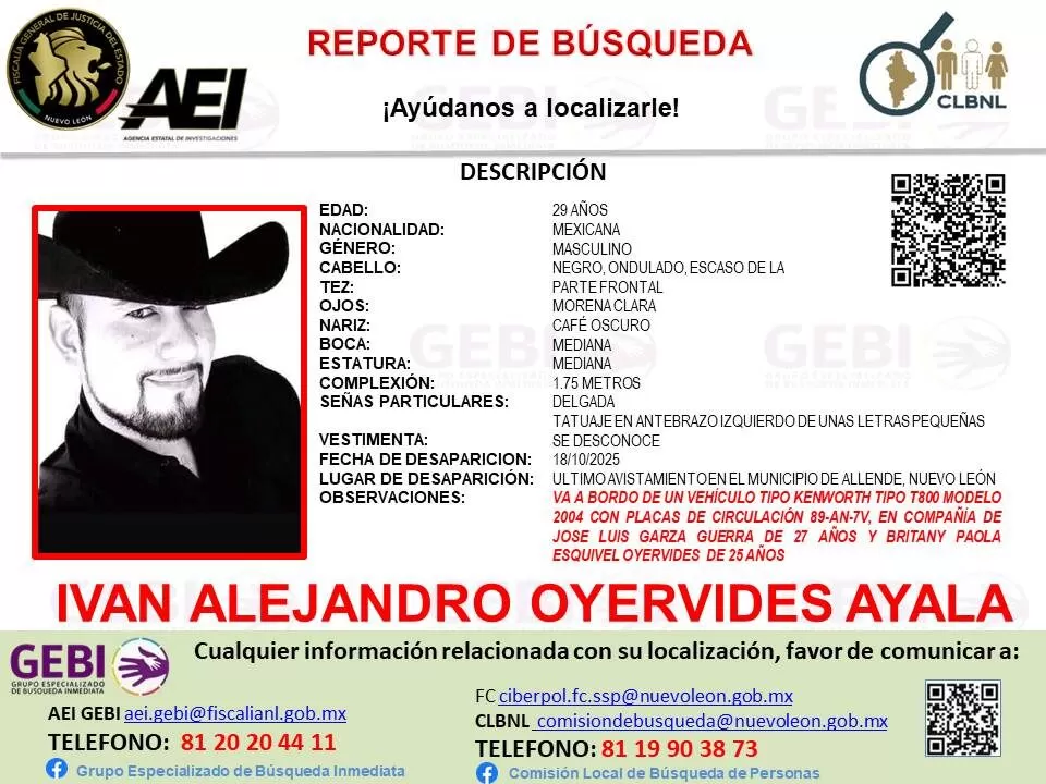 El fiscal Javier Flores Saldívar confirmó que ya existe una denuncia formal y fichas de búsqueda activadas, además de la coordinación con autoridades tamaulipecas para dar con su paradero. Detalló que los tres viajaban en un vehículo tipo Kenworth T800 color blanco, con placas 89-AN-7V, y que hasta el momento no se ha solicitado rescate ni se tiene información sobre los vehículos o los conductores.