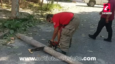 Las emergencias se registraron en diversos sectores de la ciudad, donde varios árboles terminaron sobre vehículos estacionados y cables eléctricos, generando riesgos y bloqueos temporales.