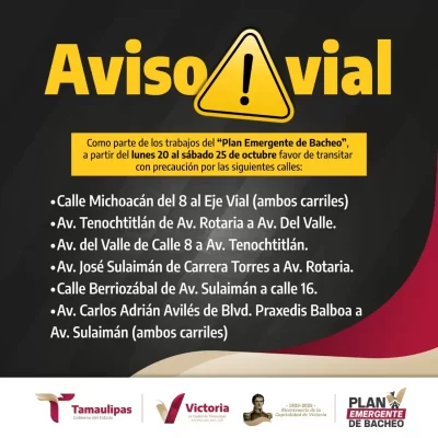 El Gobierno de Ciudad Victoria anunció que este lunes continuarán los trabajos del Programa Emergente de Bacheo, con el fin de mejorar las vialidades más dañadas y evitar contratiempos a los conductores que se trasladan a sus centros laborales y educativos.