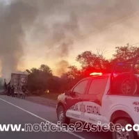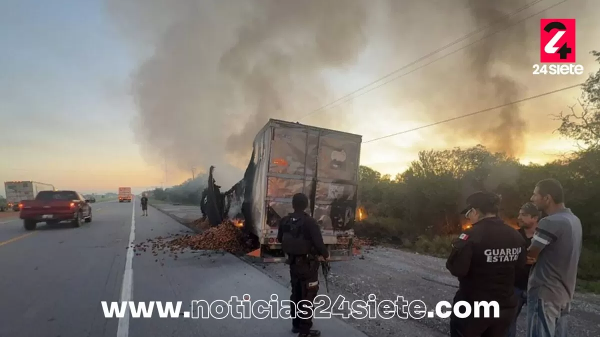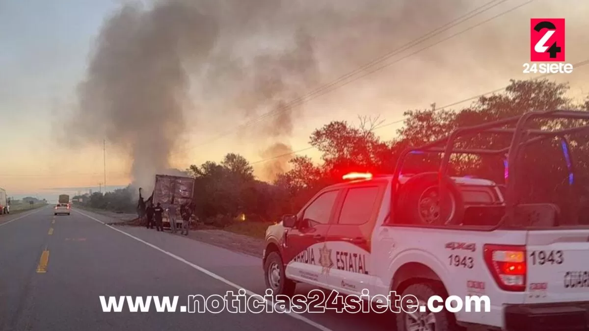Elementos de la Guardia Estatal atendieron un reporte de emergencia en el kilómetro 119 de la carretera federal 101 Victoria–Matamoros, a la altura del municipio de Jiménez, donde un tractocamión se encontraba en llamas.