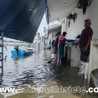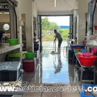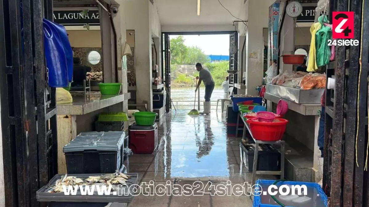 En las últimas horas, el aumento sostenido del caudal ha provocado que el agua inunde gradualmente las instalaciones del mercado, generando preocupación entre locatarios y visitantes. Pese a las condiciones adversas, los comerciantes continúan operando, atentos a las indicaciones que emitan las autoridades de Protección Civil.