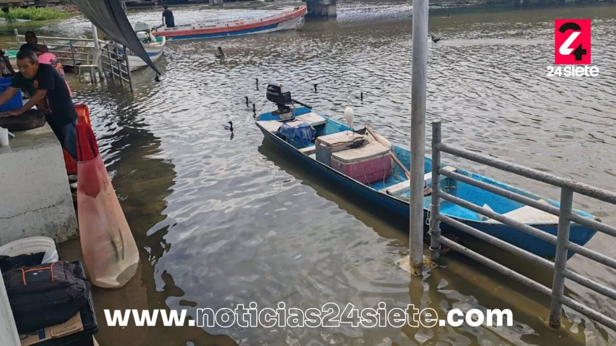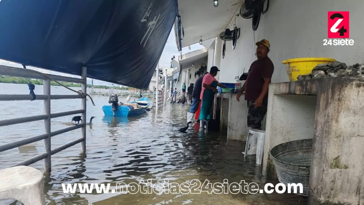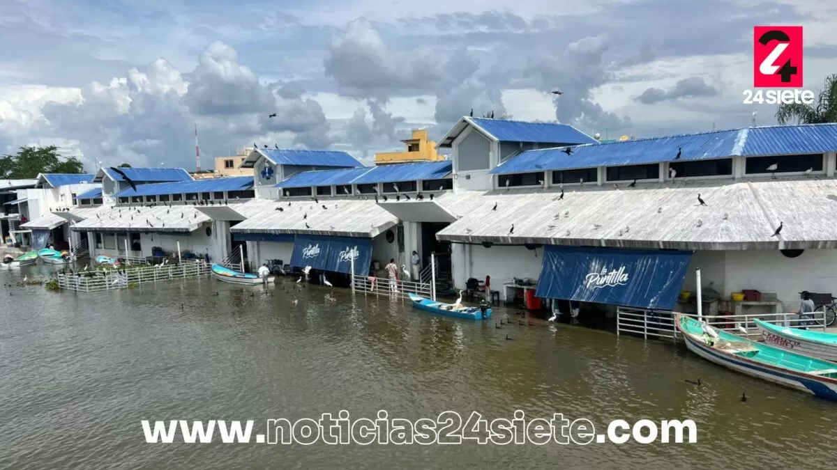 El desbordamiento del río Tamesí comenzó a afectar directamente al mercado de pescados y mariscos “La Puntilla” en Tampico, uno de los sitios comerciales más representativos de la zona sur de Tamaulipas.
