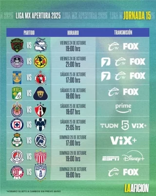 La Liga MX entra en su recta final y este fin de semana se disputa la jornada 15 del Apertura 2025, una fecha crucial para varios equipos que pelean por mantenerse con vida en el torneo. Con solo tres fechas por jugarse, ganar es cuestión de supervivencia para quienes aún buscan un lugar en la fase final.