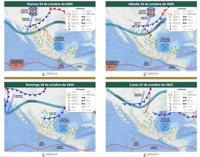 De acuerdo con la Conagua, el fenómeno estará acompañado de una “surada”, es decir, vientos del sur que podrían alcanzar entre 20 y 35 km/h, lo que provocará un cambio en las condiciones del clima en Nuevo León, Coahuila y Tamaulipas. Las ráfagas podrían intensificarse durante el fin de semana, generando oleaje elevado y cielos nublados en la zona norte y noreste del país.
