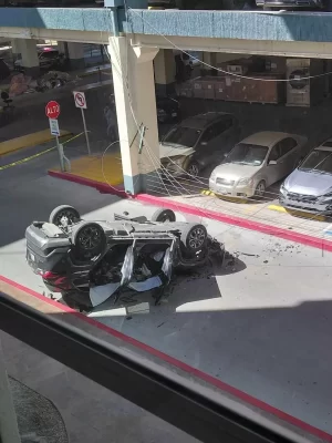 Las autoridades acordonaron la zona para realizar labores de seguridad y verificar los daños en la estructura del estacionamiento. Gracias a la rápida atención y al uso del cinturón de seguridad, la mujer logró sobrevivir a la caída.