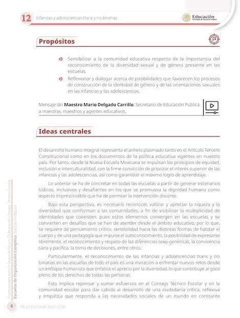 El material invita a los maestros a reflexionar sobre los retos y realidades que viven las infancias trans y no binarias, y propone actividades para fomentar el diálogo, la empatía y el respeto. Entre los ejemplos, se sugiere analizar cómo actuar si una alumna pide usar uniforme masculino o si un alumno desea portar falda y ser identificado con otro nombre o pronombres.