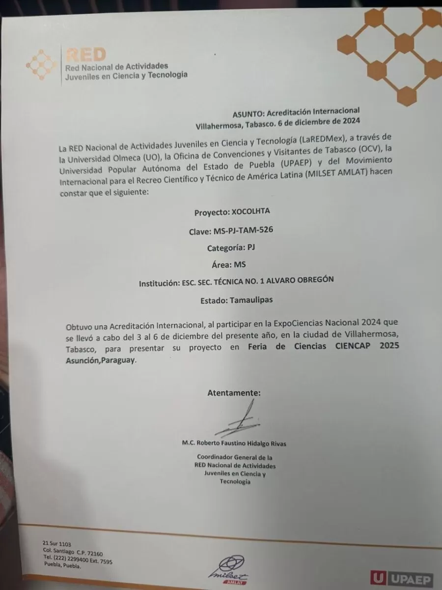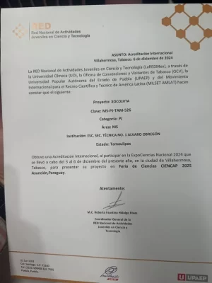 Tras destacar en certámenes estatales y obtener el reconocimiento del Consejo Tamaulipeco de Ciencia y Tecnología (COTACYT), ahora este proyecto cruza fronteras al llegar a Asunción, Paraguay, donde mostrará al mundo cómo la ciencia, la creatividad y la cultura mexicana se unen para generar soluciones con impacto social.