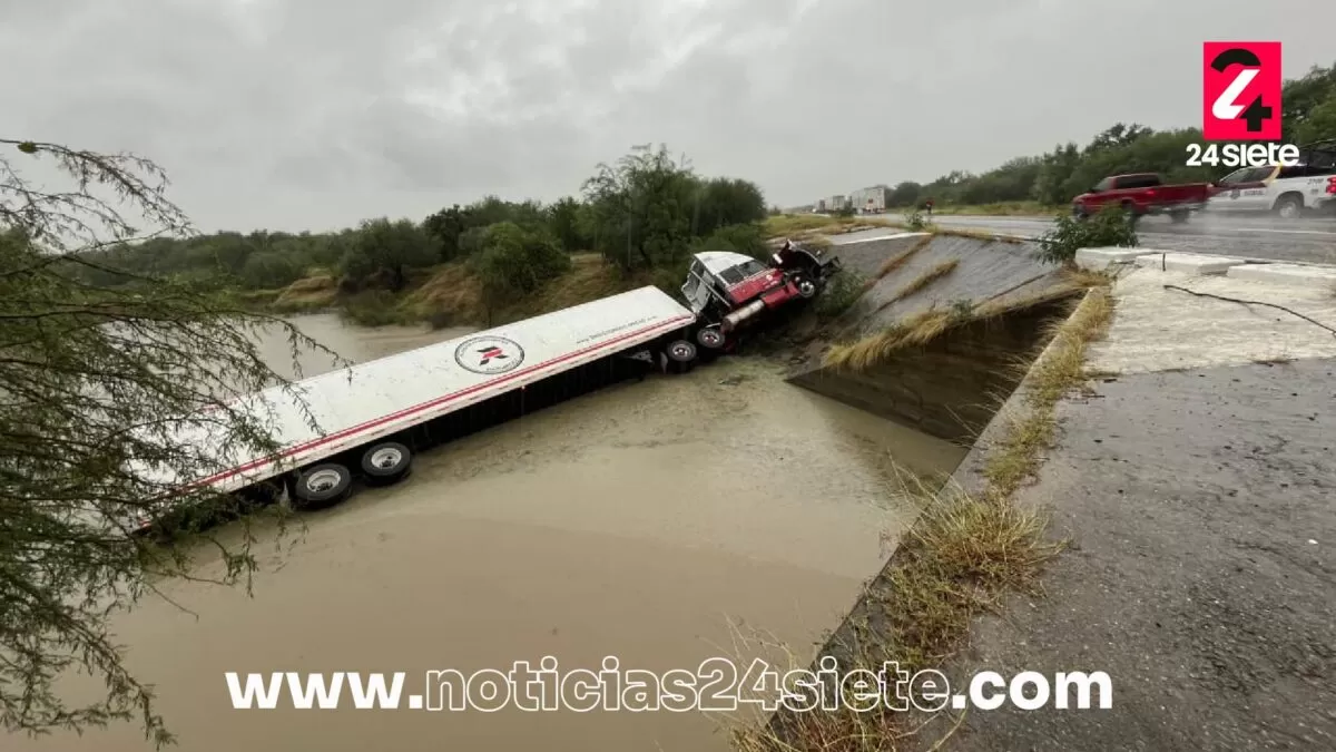 Un tractocamión volcó este jueves a la altura del Río Pilón, en el municipio de Jiménez, Tamaulipas, sin que se registraran personas lesionadas ni afectaciones a la circulación vehicular.